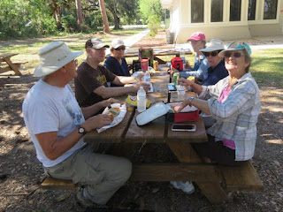1) There are restrooms at the Visitor's Center adjacent to the plantation house, but there are no picnic facilities. I spoke to the park ranger who said we are perfectly free to picnic on the grounds, as long as we don't block the view of the plantation house itself, as of course it's a photo op for many - so if we picnic we would need to bring blankets, folding chairs, etc. Alternately, she told me, we could drive 5 minutes down the road to the Ribault Club which has a public covered picnic pavilion by their boat ramp.